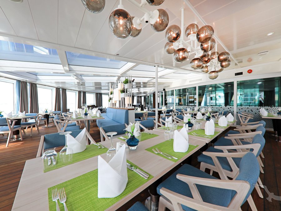 - Vollpension mit Menüwahl an Bord. Auf Wunsch servieren wir auch Gerichte für spezielle Diäten (Diabetiker, glutenfrei, laktosefrei etc.)